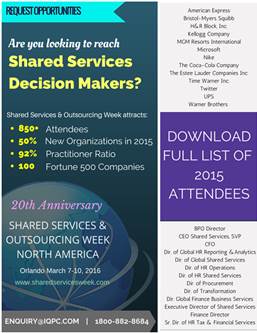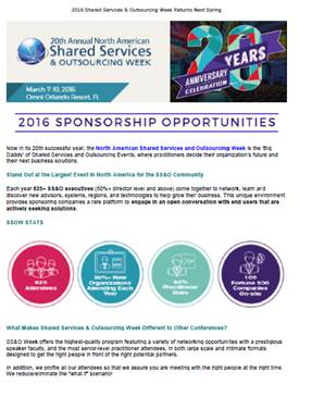 This is an example of the email for our upcoming event, SSOW. The subject line was simply (Your company’s) Involvement in Shared Services & Outsourcing Week.